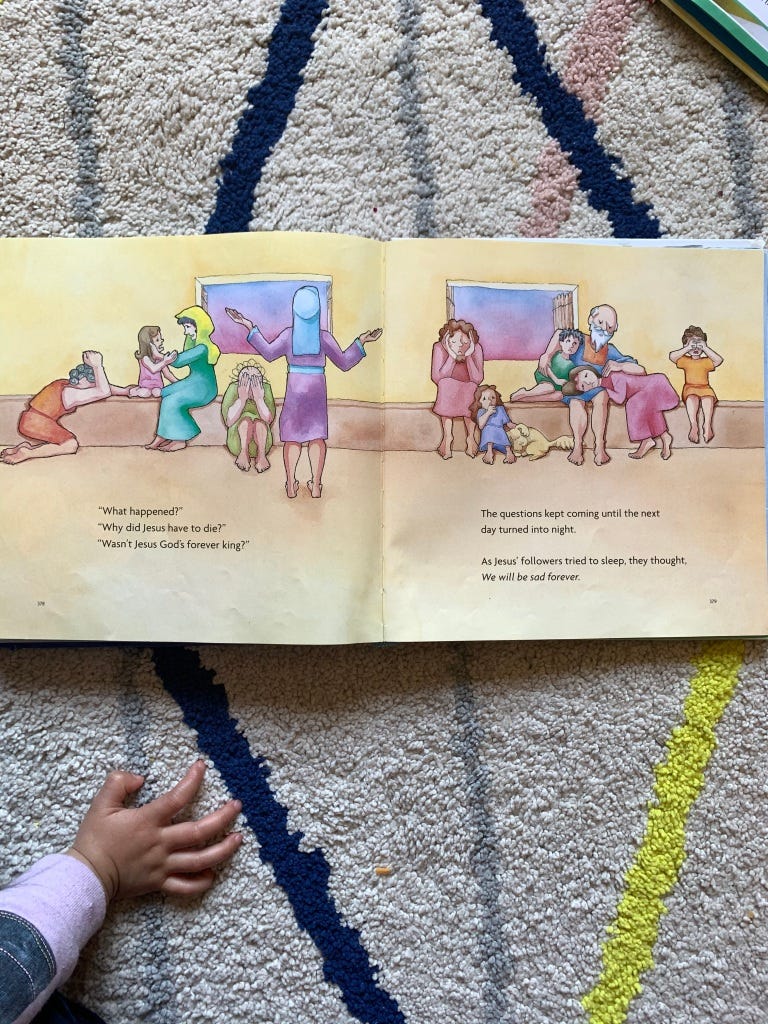 I never thought much about that Saturday, not until I read this page to my daughter. Years later, the phrase, imagined by the author of how the disciples felt that day, would rise to the forefront of my mind as I walked through my own loss: